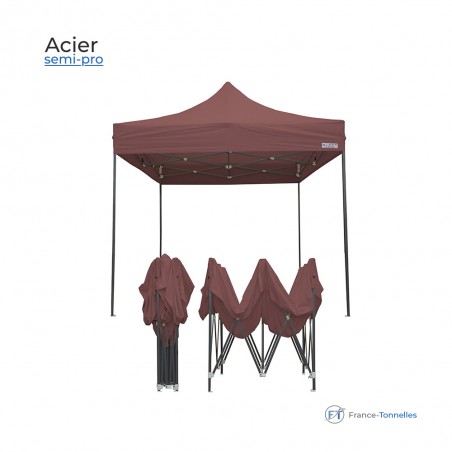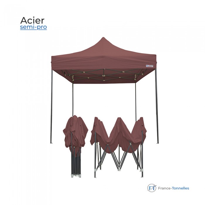 - La bâche de toit de nos tonnelles Acier Semi Pro est en polyester avec enduction PVC de 320g/m². De très bonne qualité, elle est 100% étanche. Vous n’aurez plus à craindre la pluie.